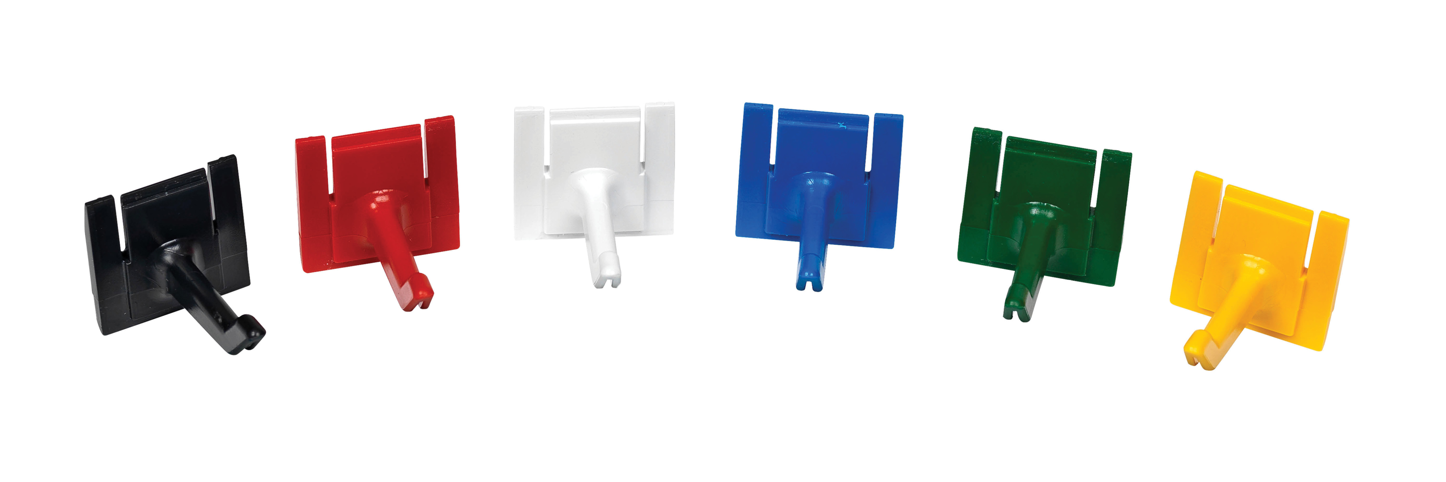 Die Toolflex Kunststoffhaken können nur an der Toolflex Aluminium Schiene montiert werden. Die Haken sind in 6 Farben erhältlich: schwarz, rot, weiß, blau, grün und gelb
